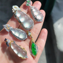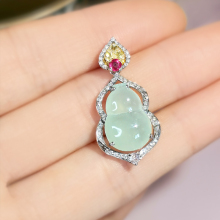 天然a货冰种翡翠葫芦吊坠18k金镶嵌钻石项链
